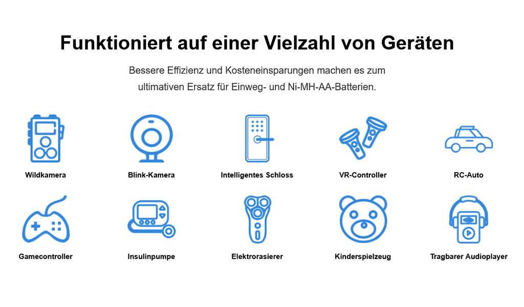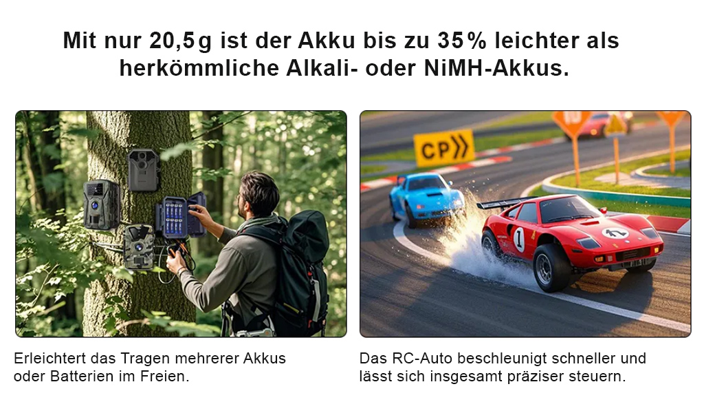 Konstantnih 1,5 V zaradi integrirane regulacije – ta litij-ionska baterija je idealna za naprave, ki se zanašajo na stabilno napetost in indikator nizke napolnjenosti baterije, kot so radijski sprejemniki, modeli RC ali občutljiva elektronika, ki ima težave z NiMH ali šibkejšimi alkalnimi baterijami.