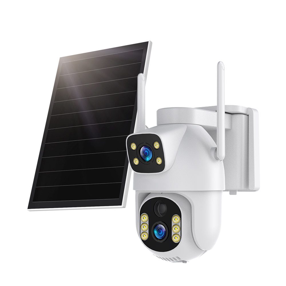 1. 4MP dvojna objektivna PTZ kamera z dvojnim zaslonom in 4G ter Litionskim baterijskim napajanjem iz sončne energije