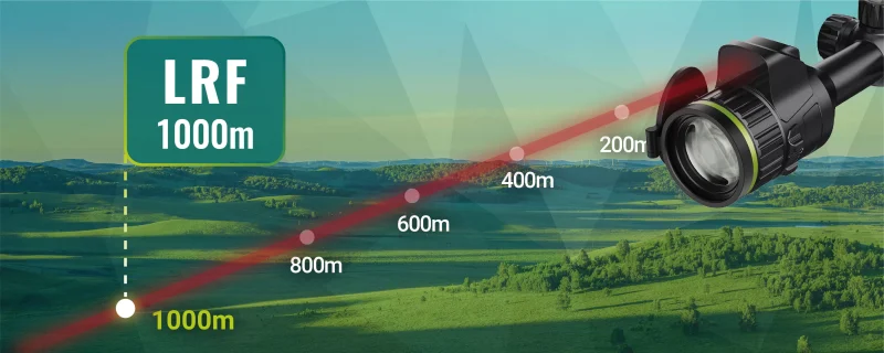 Volans, opremljen z vgrajenim laserskim daljinomerom, ponuja doseg 1000 m LRF in natančnost ±1 m, kar uporabnikom omogoča natančno določanje razdalje do cilja z večjo natančnostjo.