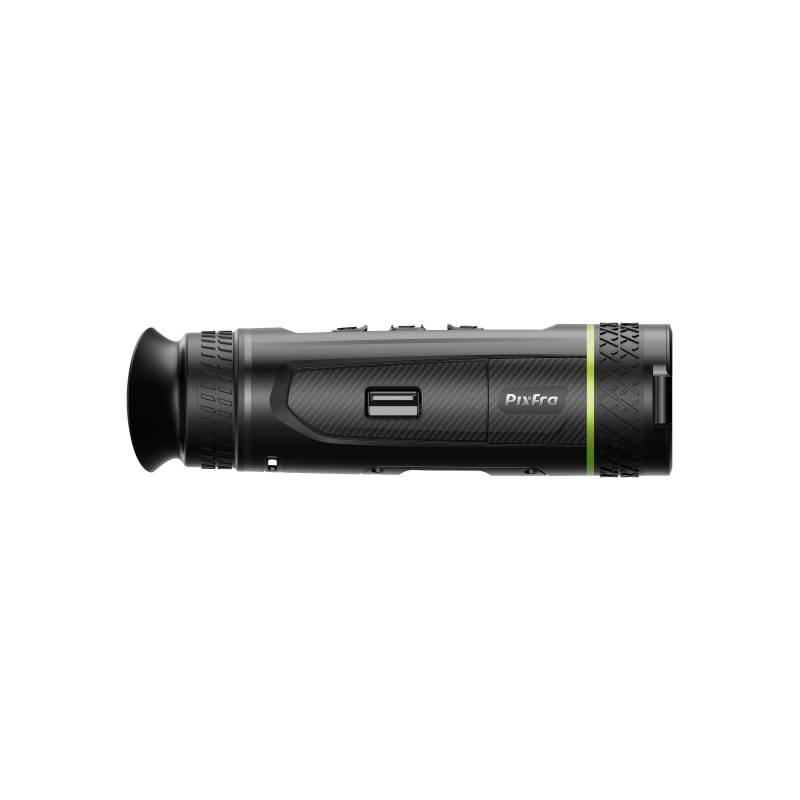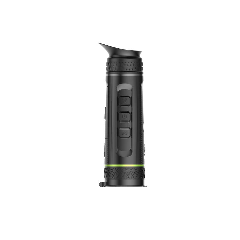 Pixfra Sirius termalni monokular ima klasično postavitev s tremi tipkami, zasnovano za zanesljivo enoročno upravljanje. Njegova udobna oblika in lahka zasnova zagotavljata prijeten oprijem za daljše avanture na prostem, kar poudarja Siriusovo predanost uporabniku prijazne funkcionalnosti.