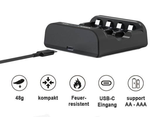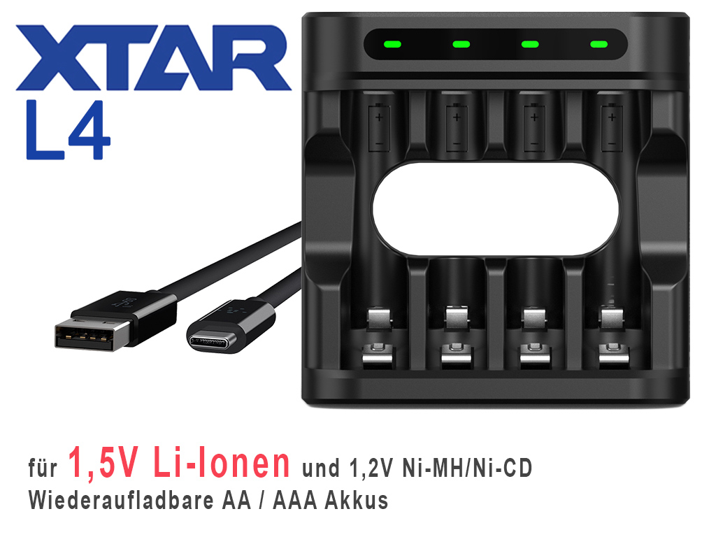 LC4 je polnilnik s 4 režami za 1,5 V litij-ionske baterije z regulirano izhodno napetostjo in indikatorjem, v velikostih AA (Mignon) in AAA (Micro).